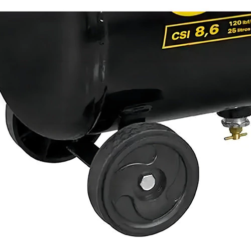 Com vazão de 8,6 pcm e pressão de 120 lbf/pol², o Pratiko CSI 8,6/25 é ergonômico e fácil de usar, conta com cabo de manobra e rodas que facilitam seu transporte e manuseio durante a aplicação.