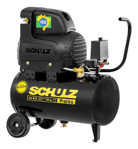 Projetado e fabricado pela Schulz no Brasil, o compressor portátil Pratiko CSI 6,6/20 oferece mais possibilidades para suas atividades profissionais. Indicado para serviços leves e pequenas manutenções, o Pratiko CSI 6,6/20 é excelente para pinturas em geral com pistola de pintura de baixa produção*, limpeza de peças e superfícies com pistola e bico de ar, acionamento de pequenas ferramentas pneumáticas, pulverização de óleo para lubrificação de máquinas e equipamentos, calibragem de pneus e enchimento de objetos infláveis, como bolas, boias, botes e colchões. A praticidade faz parte de todos os detalhes do compressor, que possui suporte exclusivo para enrolar o cabo elétrico, reservatório certificado, motor com relé térmico, botão liga e desliga no pressostato e carenagem que melhora seu desempenho e protege do contato direto com as partes quentes do produto. Leve, compacto e com alça de transporte, o Pratiko CSI 6,6/20 tem a tecnologia, qualidade e tradição Schulz.